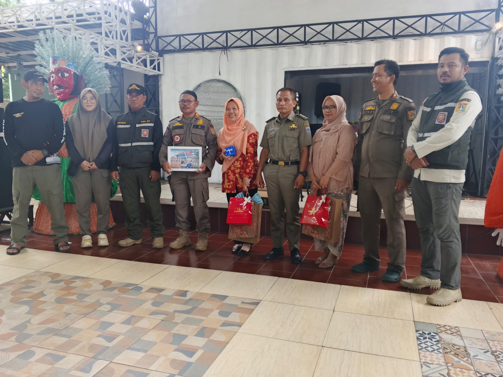 Dua anggota yang memasuki masa pensiun adalah H. Burhanudin (mantan Kasatpol PP Kelurahan Papanggo) dan Sutardi (anggota Satpol PP Kecamatan Tanjung Priok). Acara ditutup dengan hiburan musik dangdut.