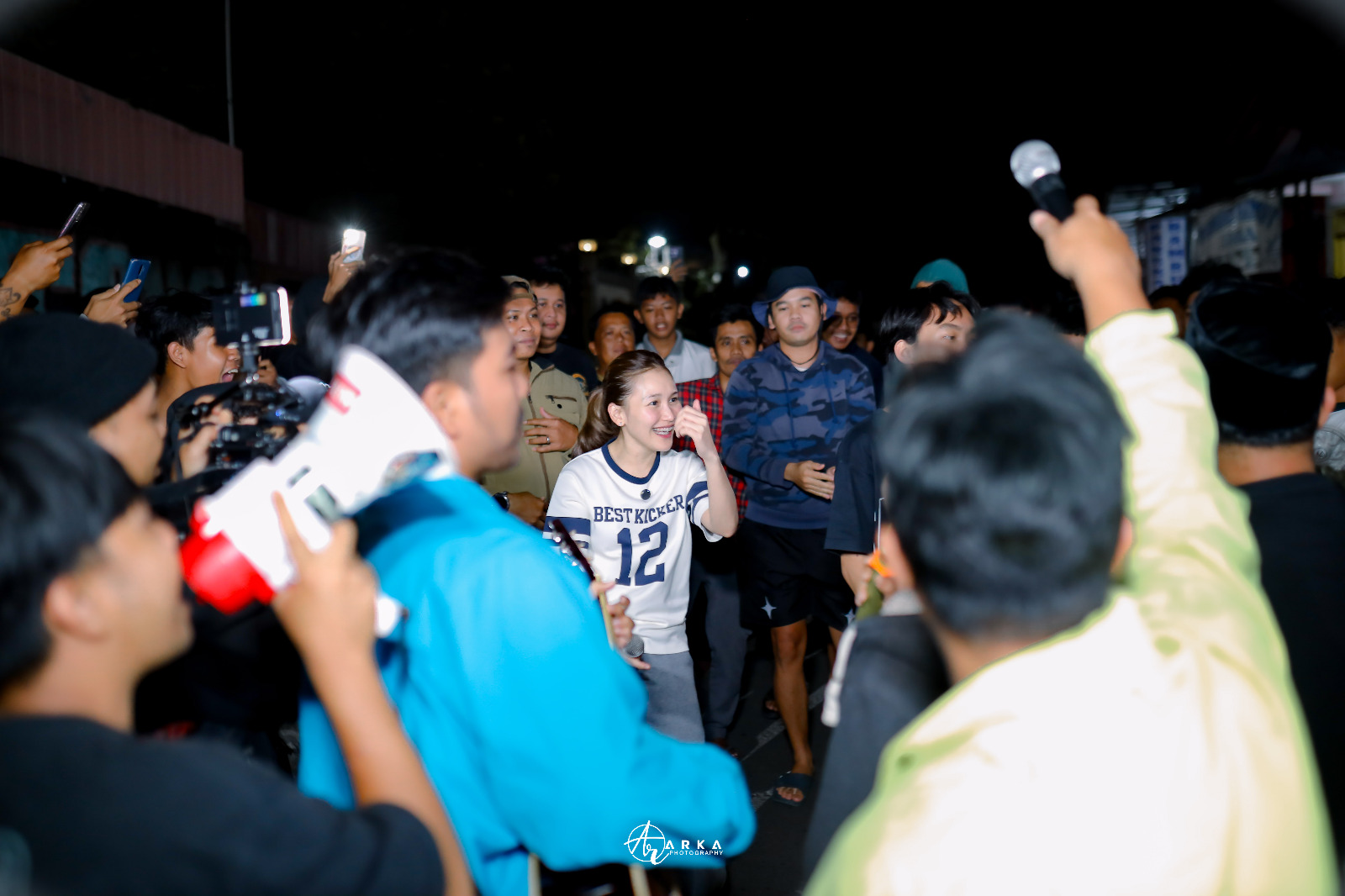 Irama lagu yang energik langsung menghidupkan suasana. Warga kompak mengikuti yel-yel tersebut, sementara Ayu Ting Ting terlihat tersenyum, tertawa, dan ikut menikmati momen hangat itu. Kehangatan sahur berubah menjadi ajang hiburan penuh kebersamaan.