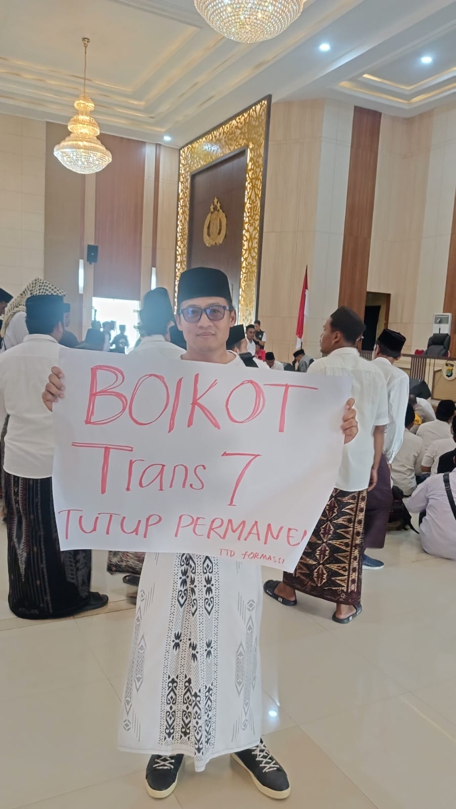Koordinator FORMASSI sdr. Aam juga menyampaikan “Aksi ini kami sampaikan dengan sangat beretika untuk memberikan pemahaman kepada Trans7, meskipun hati kami sakit, kami marah, darah kami mendidih karena Marwah Kiyai, Ulama dan pondok pesantren dilecehkan, difitnah, di framing memperbudak santri,” tandasnya.