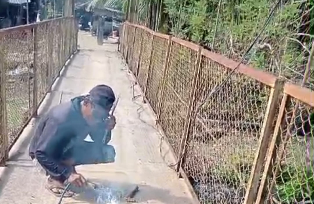 Alhamdulillah saat ini pekerjaan rehabilitasi jembatan gantung desa Lawet sedang kita dikerjakan, dan saat ini sudah masuk pekerjaan pengelasan lantai jembatan pabrikasi besi jembatan” ujar Beni Hardi, Senin (2/2-2026)