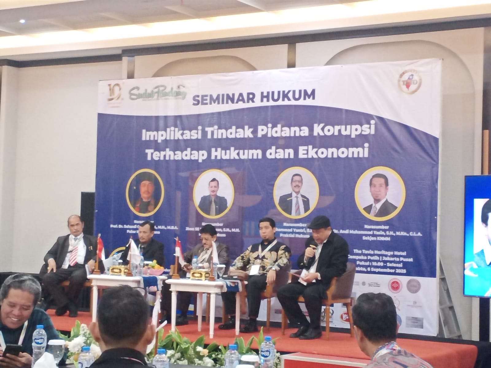 TamperakNewsmy.id – JAKARTA, Sabtu (6/9/2025) – Seminar hukum yang digelar di The Tavia Heritage Hotel, Cempaka Putih, Jakarta Pusat, pada Sabtu (6 September 2025), menggemparkan publik dengan diskusi mendalam mengenai implikasi tindak pidana korupsi terhadap hukum dan ekonomi Indonesia. Acara yang dihadiri oleh sejumlah pakar hukum dan praktisi, termasuk Prof. Dr. Suhandi Cahaya, SH, MH, MBA, Jhon SE Panggabean, SH, MH, H. Muhammad Yuntri, SH, MH, dan Dr. Andi Muhammad Yasin, SH, MKn, CLA (Sekjen KNMM), menyoroti betapa masifnya korupsi yang telah merusak berbagai aspek kehidupan berbangsa dan bernegara.