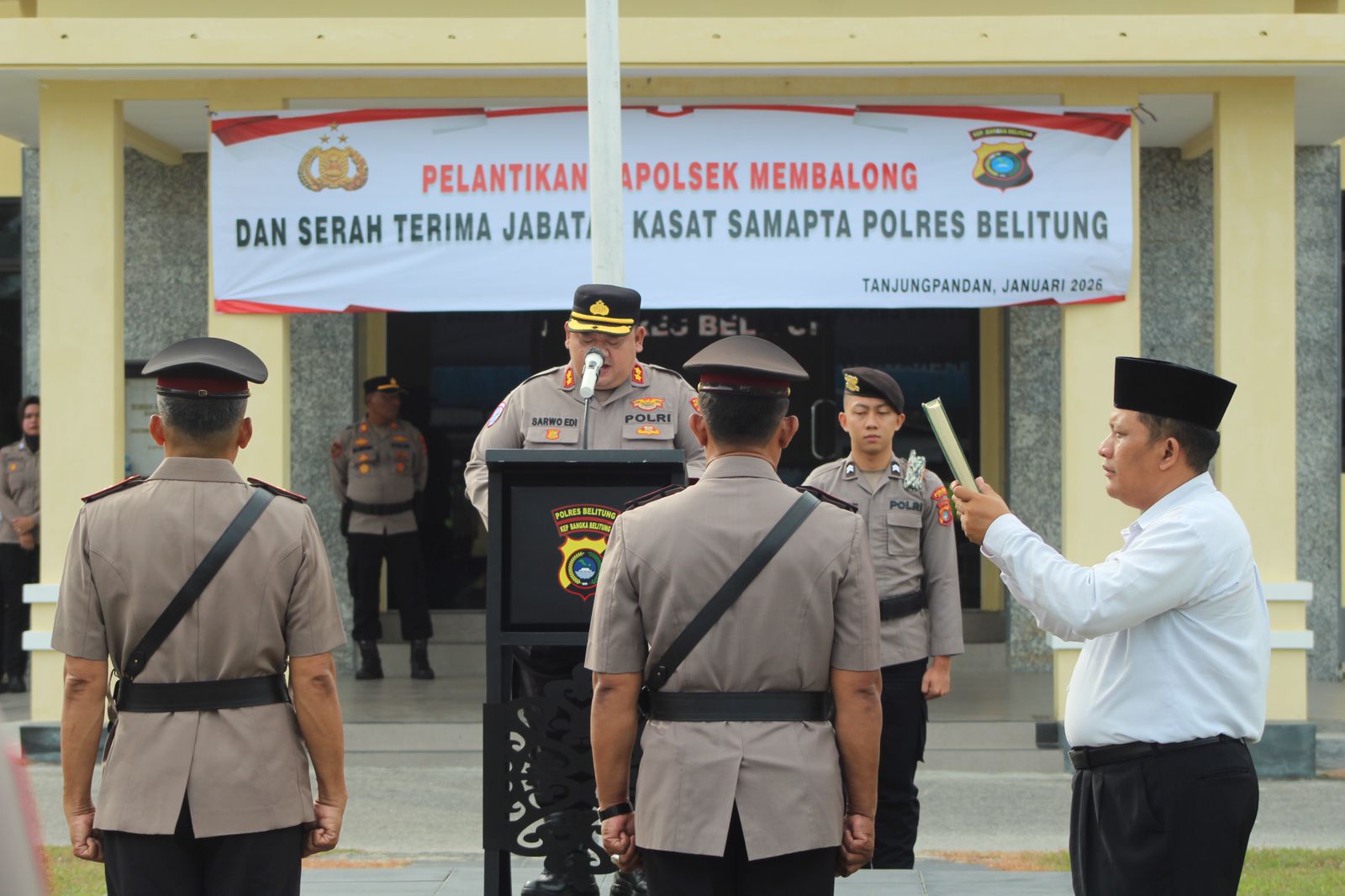 Tamperak News  – Tanjungpandan – Kapolres Belitung, AKBP Sarwo Edi Wibowo, S.I.K., memimpin langsung upacara serah terima jabatan (Sertijab) dan pelantikan Pejabat Utama (PJU) di lingkungan Polres Belitung. Kegiatan ini berlangsung khidmat di Halaman Mako Polres Belitung pada Selasa pagi (27/01/2026).