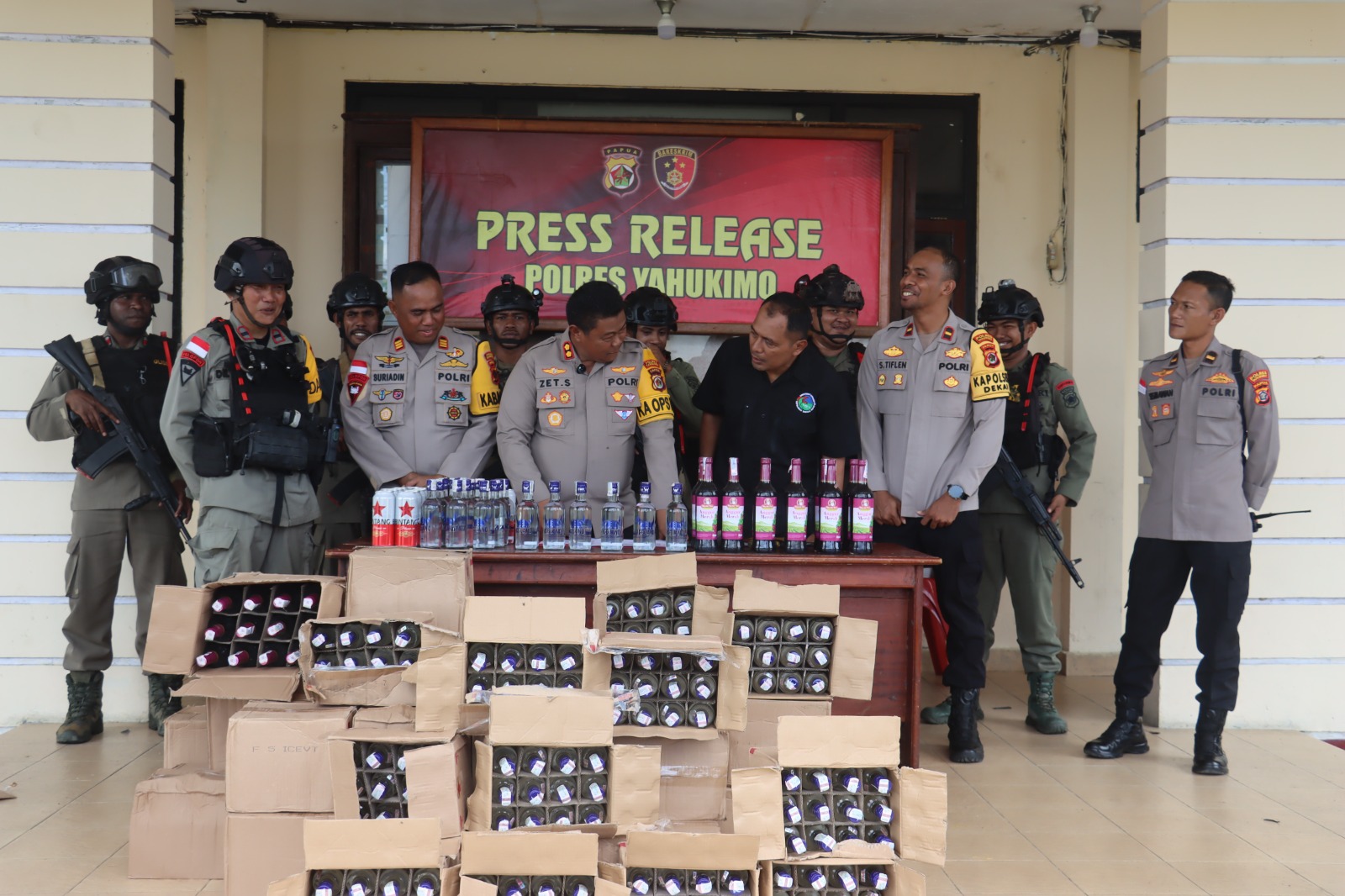 “Selama ini beredar isu bahwa ada aparat yang bermain dalam peredaran miras di Kabupaten Yahukimo. Hari ini kami buktikan bahwa tidak ada aparat yang terlibat, hanya saja kami sering dijadikan kambing hitam,” ungkap AKBP Zet Saalino.