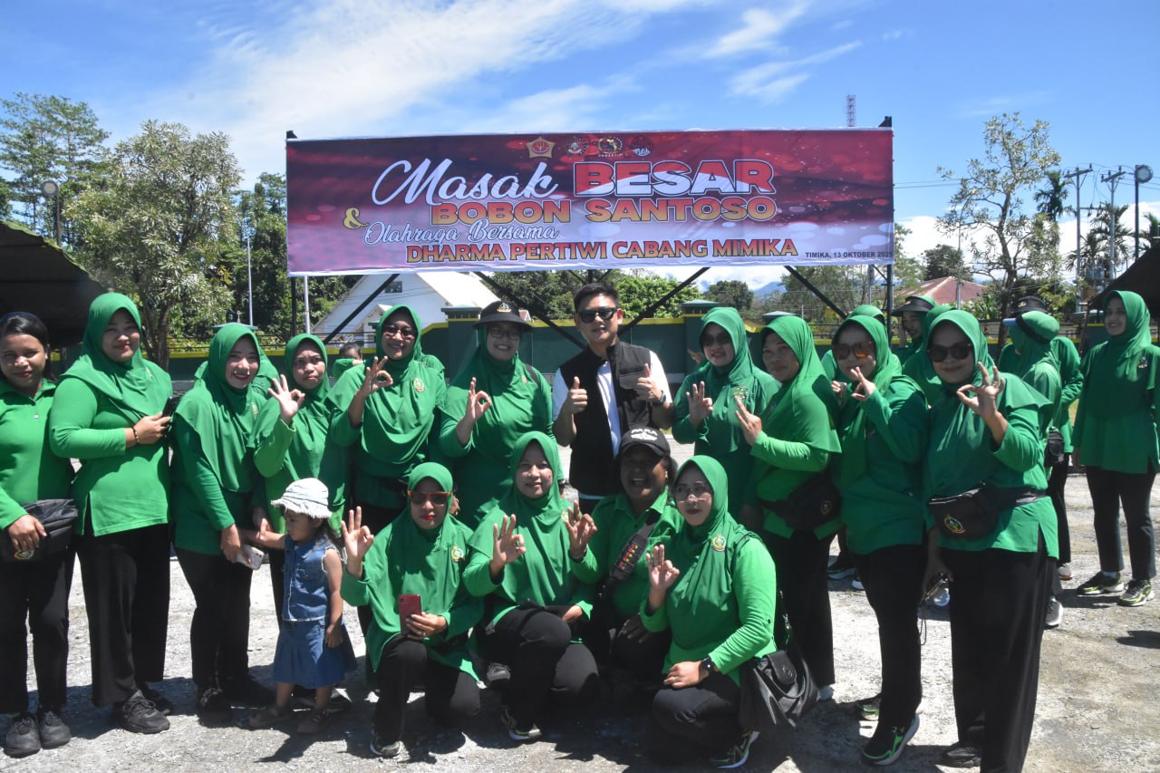 Tamperak News – Timika – Bertempat di Lapangan Upacara Makodim 1710/Mimika, Kodim 1710/Mimika bersama Kogabwilhan III berkolaborasi dengan Youtuber Bobon Santoso menggelar Masak Besar dan Olahraga Bersama Dharma Pertiwi Cabang Mimika, Senin (13/10/2025).