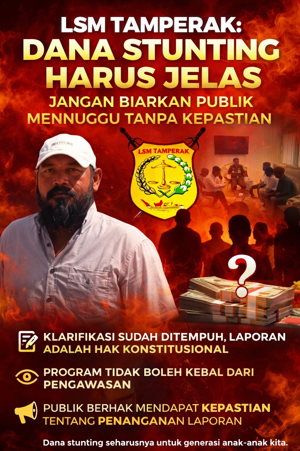 LSM Tamperak menilai, keterbukaan informasi merupakan bagian penting dari akuntabilitas pengelolaan anggaran publik, apalagi program stunting merupakan program strategis nasional yang menyangkut masa depan generasi.