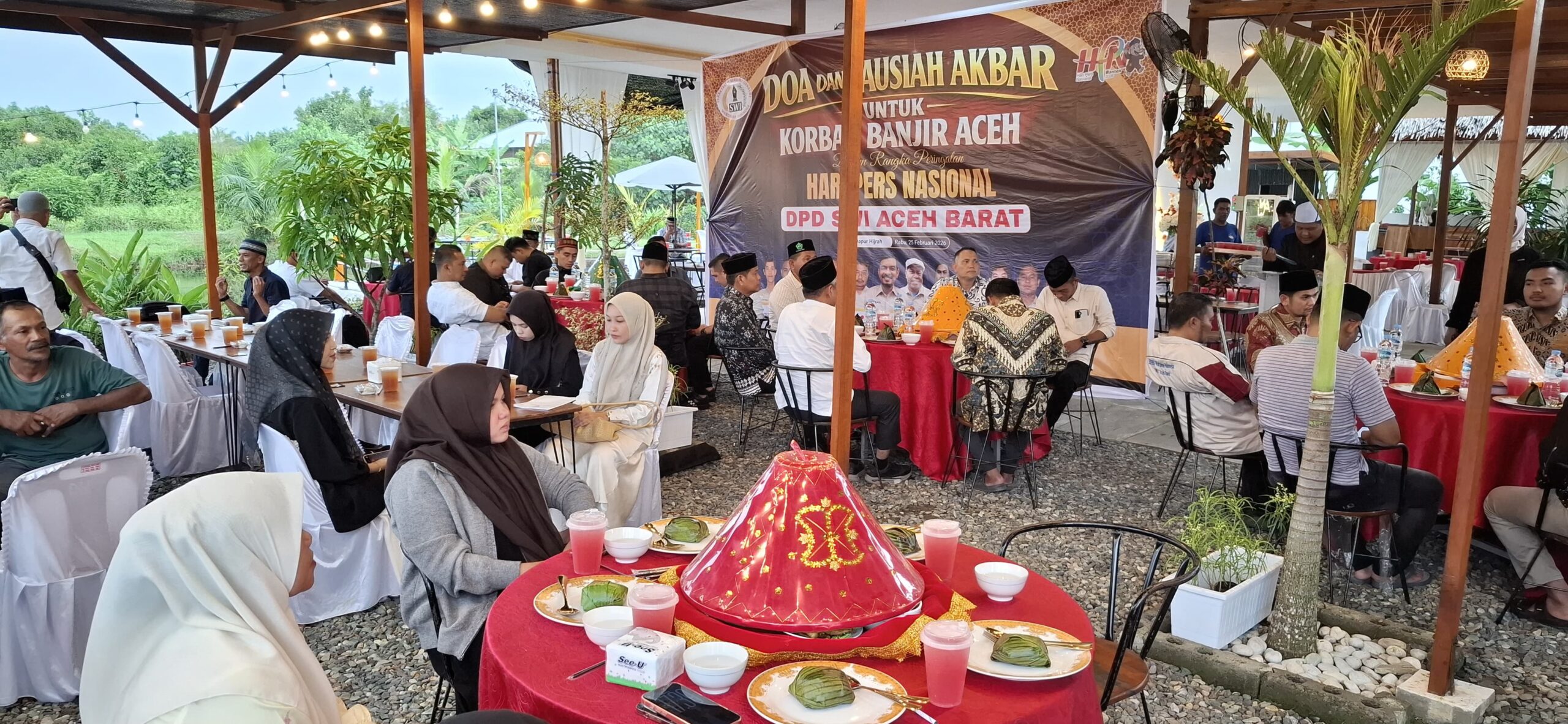 Tamperak News – Aceh Barat – Dewan Pimpinan Daerah Sekretariat Bersama Wartawan Indonesia (DPD SWI) Aceh Barat menggelar kegiatan tausiah akbar dan doa bersama untuk korban bencana Alam dalam rangkaian peringatan Hari Pers Nasional (HPN) 2026. Kegiatan tersebut berlangsung pada Rabu, 25 Februari 2026 di Dapur Hijrah, Desa Seuneubok, Kecamatan Johan Pahlawan, Kabupaten Aceh Barat.
