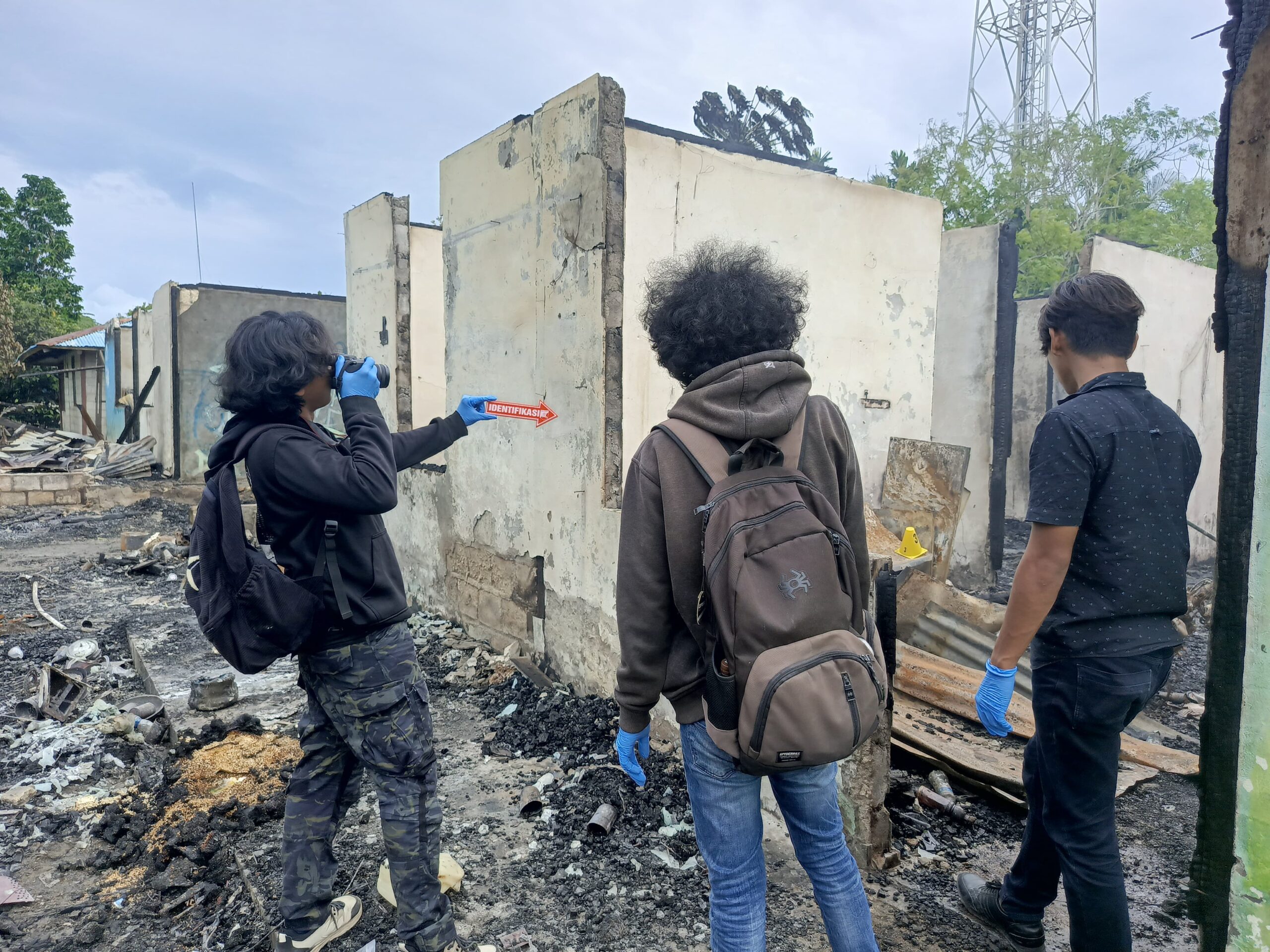Sejumlah barang bukti yang ditemukan di sekitar bangunan yang terbakar telah dikumpulkan dan didokumentasikan untuk keperluan penyelidikan lebih lanjut. Area kejadian juga telah diberi garis polisi sebagai langkah pengamanan agar proses penyidikan berjalan lancar dan tidak terganggu.