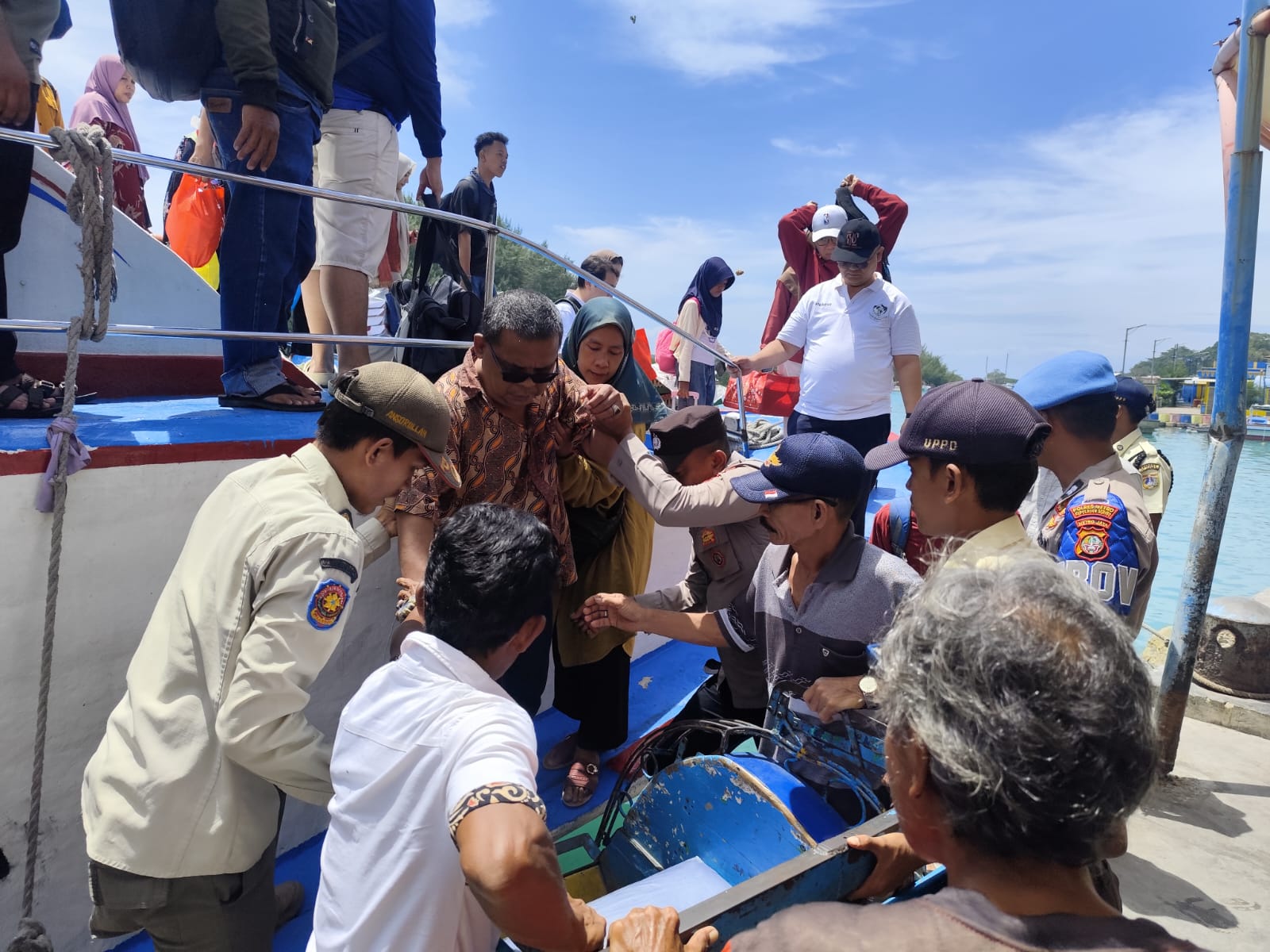 Personel kepolisian tampak sigap membantu warga turun dari kapal, termasuk wisatawan yang membawa banyak barang. Di salah satu momen, petugas bahkan membantu proses evakuasi seorang penumpang yang terlihat mengalami kesulitan untuk bergerak. Dengan kerja sama antara polisi dan warga, penumpang tersebut berhasil diangkat dengan aman ke dermaga.