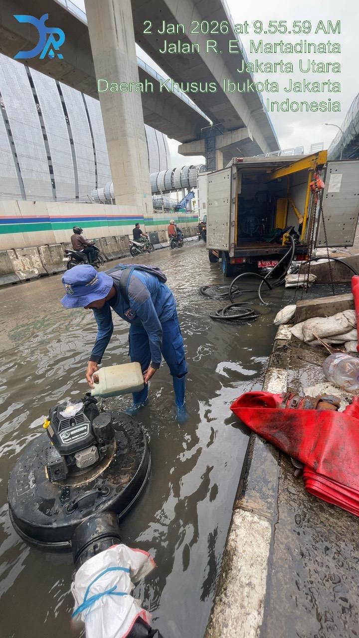 Dalam mengantisipasi cuaca ekstrim ini, dipastikan pompa mobile ditempatkan mulai 30 Desember 2025 sampai 7 Januari 2026, seperti di 2 unit Indopump di Rumah Pompa Stasioner Muara, 2 unit HSP 20 dan Inopump Putih di Kali gendong Muara Angke, 1 unit HSP 60 di PLTU Muara Karang, 1 unit di Pelabuhan sunda, 1 unit HSP 20 di Plusing Ancol, 1 unit Pompa Mobil di Koyo Cabe Lodan, 1 unit Pompa Mobil di Jalan Gunung Sahari, 2 unit Mobil Putih di Jalan RE Martadinata, 1 Mobil di Ketel Uap, 1 unit Pompa Mobil di Marunda Pitung STIP, 1 unit di Ancol Danau, dan 1 unit HSP 60 Ancol Dermaga 5 Marina.