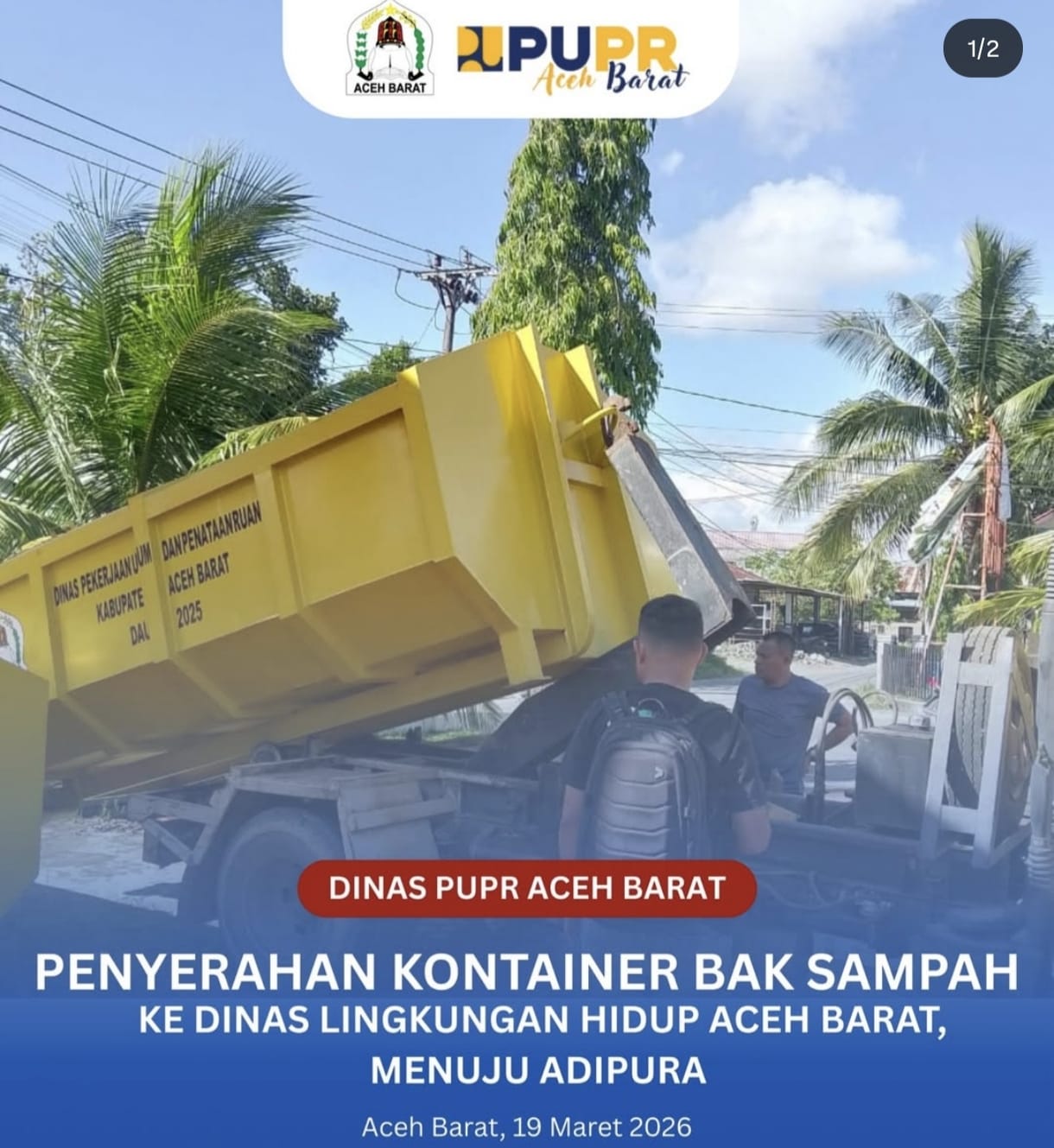 Plt. Kepala Dinas PUPR Aceh Barat, Fadli Octora, ST, menyampaikan bahwa penyediaan kontainer sampah tersebut merupakan bentuk sinergi antarinstansi dalam menjawab kebutuhan riil di lapangan, khususnya terkait penanganan sampah di kawasan perkotaan.