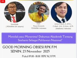 Tamperak News – Jakarta – Senin (24/11/2025) – Polemik mengenai usulan pemberian gelar Pahlawan Nasional kepada Presiden ke-2 RI, Soeharto, kembali menjadi sorotan publik. Menjawab tingginya perhatian masyarakat, program Good Morning Obsesi di RPK FM 96.3 menggelar diskusi akademik bertajuk “Menolak atau Menerima? Diskursus Akademik tentang Soeharto sebagai Pahlawan Nasional” pada Senin (23/11), pukul 09.00–10.00 WIB.