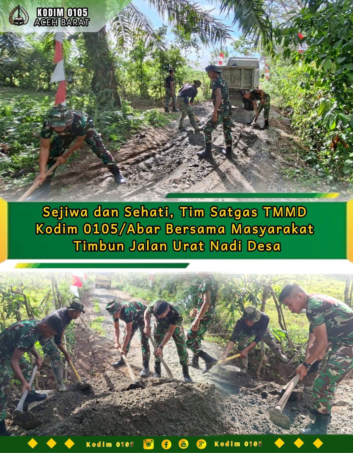 Sejiwa dan Sehati, Tim Satgas TMMD Kodim 0105/Abar Bersama Masyarakat Timbun Jalan Urat Nadi Desa