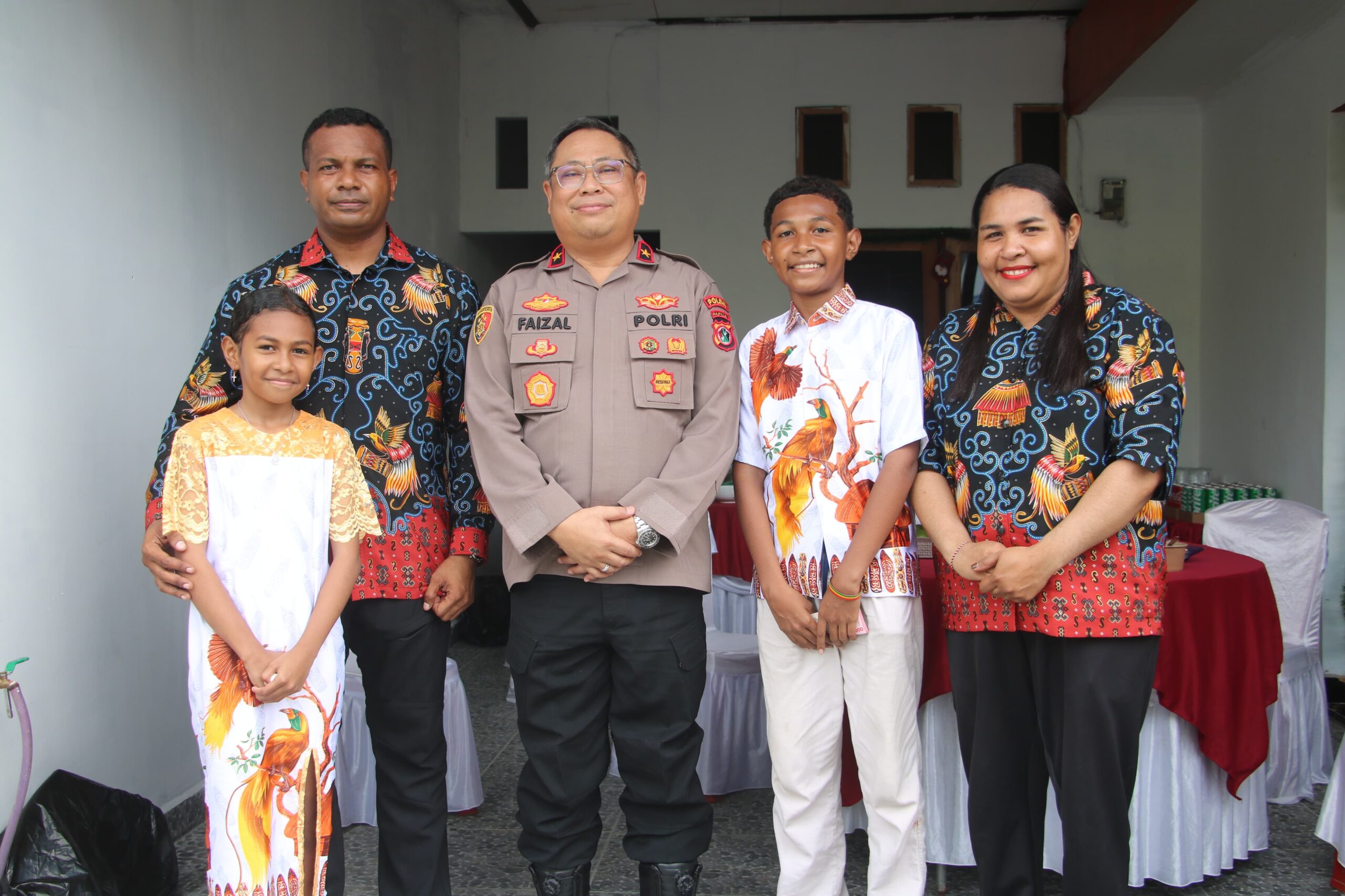 Tamperaknewsmy.id – Jayapura – Di tengah padatnya tugas dan tanggung jawab, Wakapolda Papua Brigjen Pol Dr. Faizal Ramadhani, S.sos., S.I.K., M.H., meluangkan waktu untuk mengunjungi Salah satu anggotanya yang merayakan Natal Ipda Calvin beserta keluarga di Kompleks Perumahan Sentani pada hari kedua perayaan, Jumat, 26 Desember 2025. Kunjungan ini menjadi bentuk perhatian dan kepedulian pimpinan kepada personel yang tengah merayakan momen keagamaan bersama keluarga.
