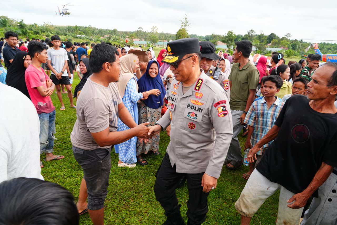 Di area pendopo, Komjen Dedi menurunkan sejumlah bantuan logistik untuk didistribusikan kepada warga melalui perangkat desa. Beberapa warga yang hadir menyampaikan terima kasih sambil berharap lebih banyak bantuan dapat segera dikirim.