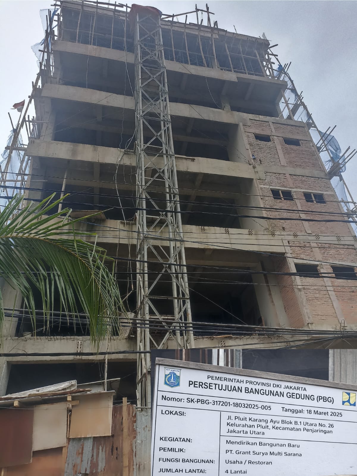 Izin SK-PBG-317201-18032025-005 diterbitkan oleh Pemprov DKI Jakarta pada 18 Maret 2025, namun kondisi di lapangan menunjukkan perbedaan yang mencolok. Warga melihat bangunan terus bertambah tinggi dan memiliki struktur yang tidak sesuai dengan konsep restoran pada umumnya.